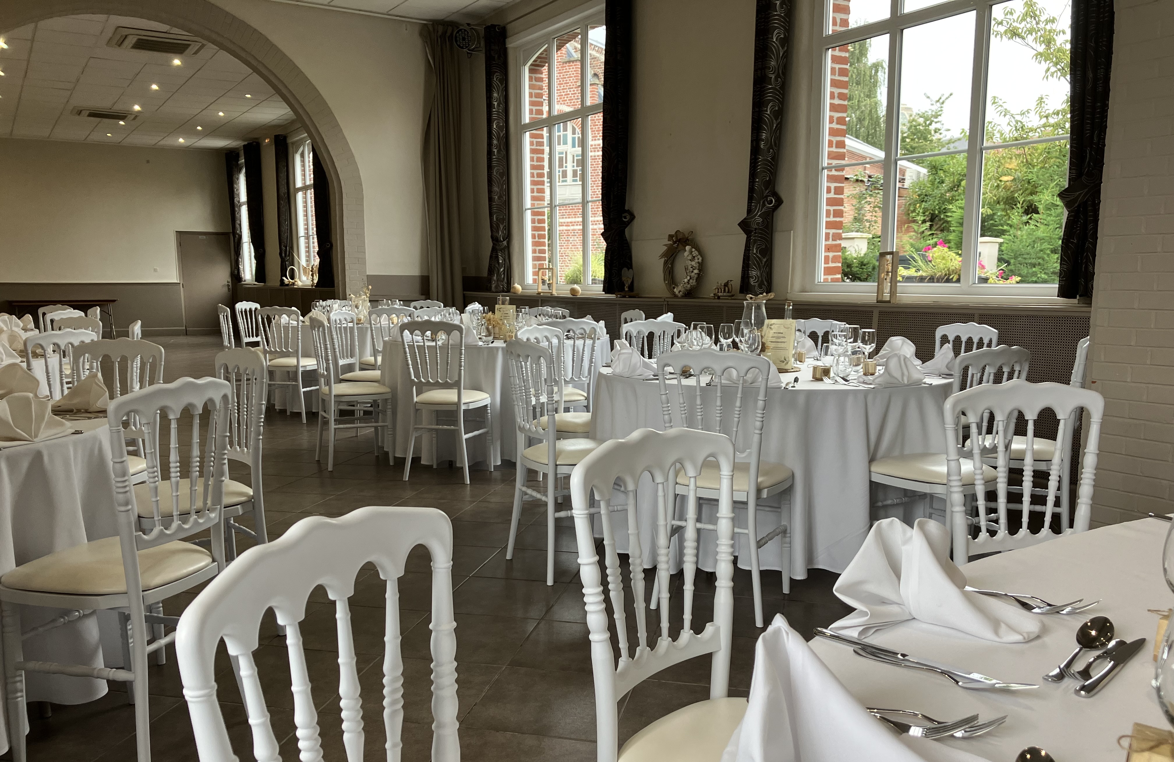 Le plus intimiste de nos salons charme par ses arches élégantes, ses volumes harmonieux et son extérieur soigné. Il est idéal pour des événements plus confidentiels, jusqu’à 90 convives en formule repas.