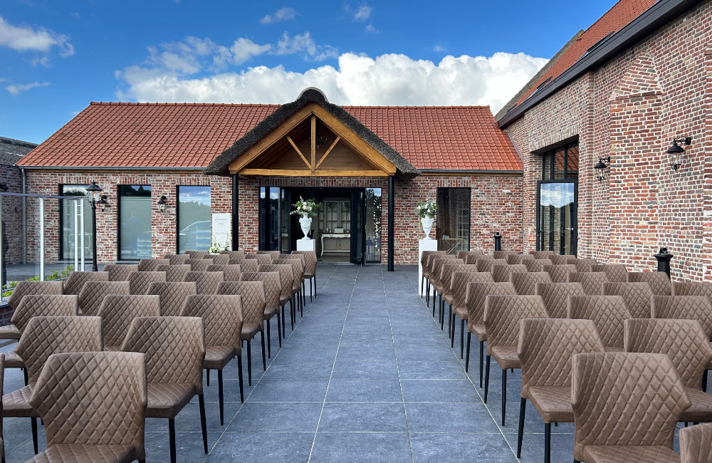 Sa salle de réception soigneusement décorée et ses extérieurs paysagers offrent un environnement adapté tant aux cérémonies privées, comme les mariages qu’aux événements professionnels.. Sa capacité est de 130 personnes à table et bien davantage en formule cocktail.