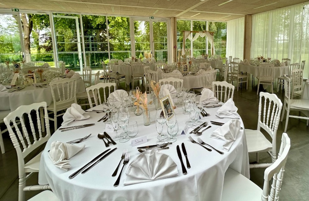 Le plus intimiste de nos salons charme par ses arches élégantes, ses volumes harmonieux et son extérieur soigné. Il est idéal pour des événements plus confidentiels, jusqu’à 90 convives en formule repas.